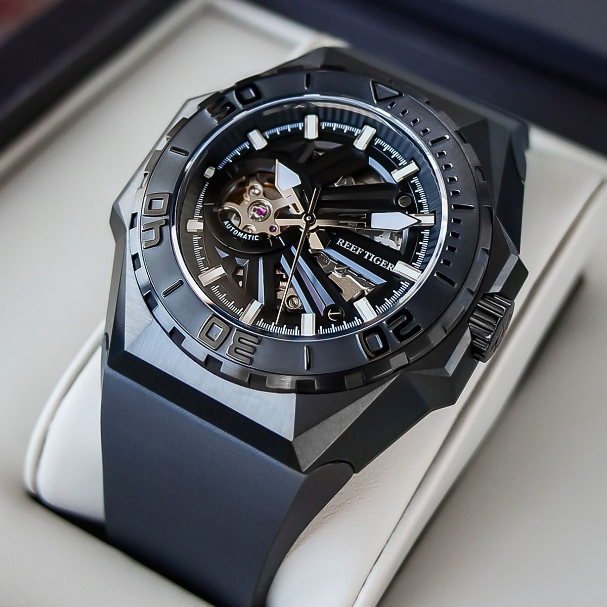 Dây đeo của Black shark S được làm bằng dây da mềm mại và thoải mái. Mọi người có xu hướng khao khát độ sáng hơn, đặc biệt là trong bóng tối. Black shark S sử dụng chất phát quang siêu sáng để hoàn thiện các chấm phát quang có khả năng kéo dài 10 giờ, có thể đọc thời gian rõ ràng và chính xác ngay cả ở vùng biển sâu. Núm vặn vặn vít khiến chuyển động có hình dạng như một cabin kín để cô lập nước biển ra khỏi vỏ. Black shark S trang bị núm vặn vặn vít có khía lớn hơn và sâu hơn đảm bảo khả năng chống nước tốt hơn trong khi các đặc điểm hoạt động trơn tru và chống trượt cho đồng hồ dưới nước biển. Vành xoay giúp người đeo làm chủ thời gian tốt hơn dưới nước biển để đảm bảo cuộc phiêu lưu dưới nước diễn ra thành công.